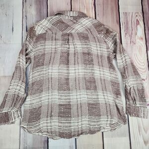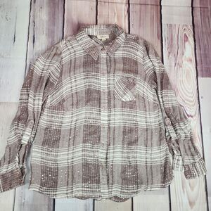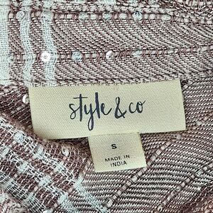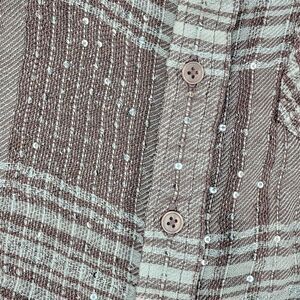 Style & Co Button Up Shirt Women's Small Long Sleeve Top Sequin Sparkle Taupe