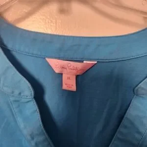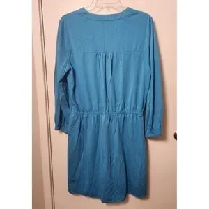 Lilly Pulitzer Womens Pima Cotton XL Blue V-Neck Long Sleeve Elastic Waist Dress