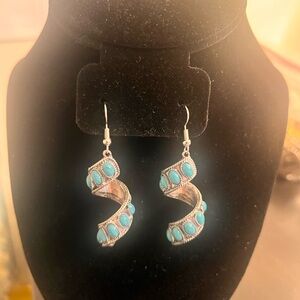 Add a touch of elegance to your look with these stunning silver and turquoise spiral earrings. Perfect for any occasion.