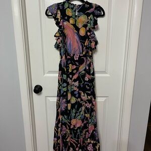 Banjanan Hannah Dress Large Eden Garden Black Print Viscose Maxi $400