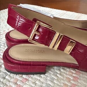 Michael Kors Burgundy Croc-Embossed Slingback Flats