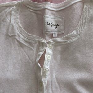 La SENZA (2) Vintage Light Pink Henley Cap Sleeve T-shirt