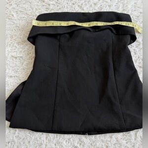 Size 2 This is a lined strapless blouse with side slits and princess seams for shaping. It’s made with (Re)ssential — softly structured stretch fabric that holds its form while you move easy. This fabric is sourced from a premier Portuguese mill and made with 54% recycled polyester and 26% LENZING™ ECOVERO™ Viscose. Features Lined Invisible back zip Using recycled fibres instead of virgin alternatives reduces carbon emissions* LENZING™ ECOVERO™ Viscose — This wood-based fibre is carefully sourced from responsibly managed forests. It’s made with at least 50% less carbon emissions and water consumption compared to generic viscose* *Results based on LCA standards via Higg MSI (Version 3.9.1)