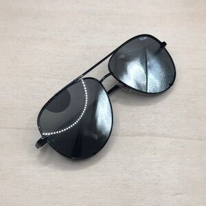 Quay X Desi High Key Aviator Sunglasses Women Black Metal Frame Mirror Lens 111