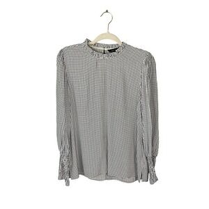 Keywords: Zara Woman, Blouse, Top, Long Sleeve, Mock Neck, Black, White, Star Print, Medium, M, Womens, Office, Career
