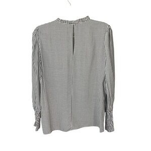 Zara Woman Blouse Top Long Sleeve Mock ruffle trim Neck Black White Star Print M