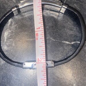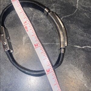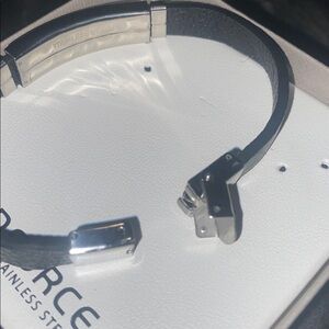 Stylish EDFORCE bracelet. Black Leather band with stainless steel and diamond accents. Elegant design.