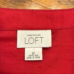 LOFT Vibrant Red Dupioni Silk Wrap Tie Blouse Women’s Size 12