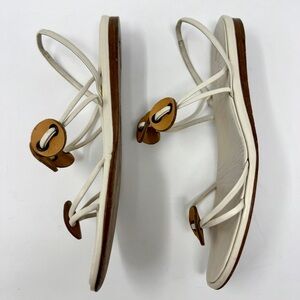 Chanel Flat Thong Sandals Cream with Brown Leather Medallions