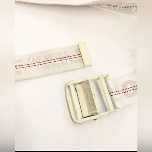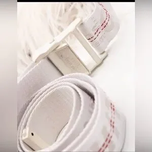 Stylish belt with a white base and red stitching. Features signature Off-White design.