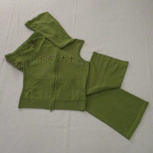 J.J. BASICS SLEEVELESS TWO (2) PIECE JADE KNIT HOODIE SET – L