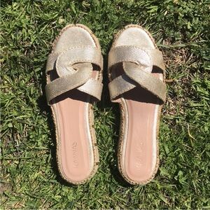 Anthropologie Kaanas Oia Infinity Flatform Espadrille Sandals in Gold Size 7