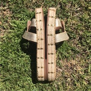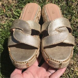 Anthropologie Kaanas Oia Infinity Flatform Espadrille Sandals in Gold Sz 7