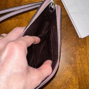 Chic Coach wristlet in lavender leather. Compact design with zip closure. Comes with dust bag.