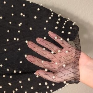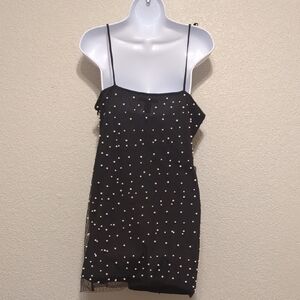 Forever 21 black faux pearl studded shoulder tie mini shift dress