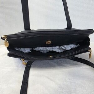 Stone Mountain Black Soft Vegan Leather Shoulder Bag Multiple Pockets Grannycore