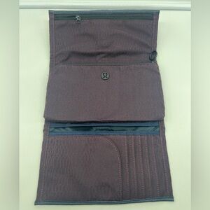 LULULEMON Test Of Time Stacked Jacquard Black Cherry Leather Trim Travel Wallet