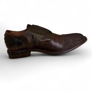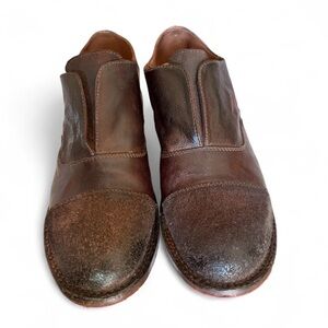 Stylish brown leather flats. Slip-on design. Perfect for casual wear.