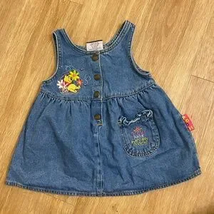 Charming denim dress featuring colorful floral embroidery. Perfect for casual outings.
