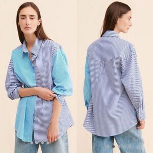 Anthropologie Bardot Spliced Boyfriend Shirt | Blue Stripe Contrast Button-Down