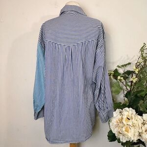Bardot Spliced Boyfriend Shirt | Blue Stripe Contrast Button-Down | Oversized Cotton | XL