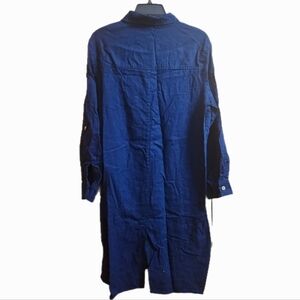 Blue Button-Up Linen Blend Shirt Dress