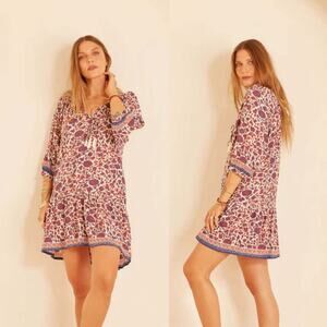 Natalie Martin Stevie Mini Dress Bloom Lapis Coral Floral Size XS NWT Bohemian