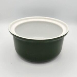 This is a vintage Fraunfelter Green Dish/Bowl. It may have had a lid to it, but I do not. This was an estate sale bulk purchase. It has scratches on the very bottom of the dish, but other than that it looks great.