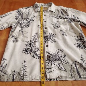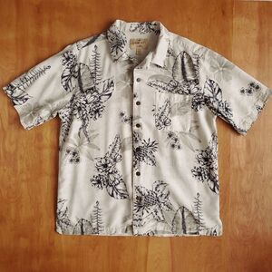Mens Vintage Hawaiian Style Shirt Sz L 100% Silk Beige Floral Havana Jacks Cafe