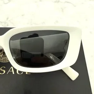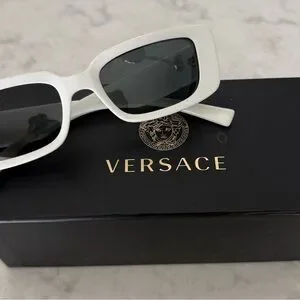 Stylish Versace sunglasses with a bold white frame. These are in like new condition. No scratches on lens or visible signs of wear. I wore them maybe twice. Beautiful!