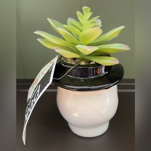 NEW WITH TAG! Ceramic sugar skull, faux succulent planter. Measures approximately 5” in height. Smoke free environment.
