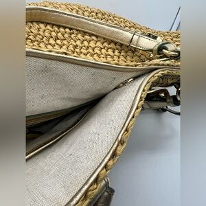 MICHAEL KORS Santorini Woven Raffia Gold Leather Tote Beach Shoulder Bag