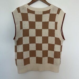 Stylish checkered sweater. Sleeveless design. Perfect for layering.