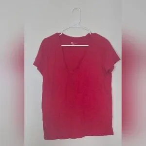 Merona t shirt, Merona V neck, red cotton tee, women’s XXL top, short sleeve t shirt, classic basic tee, casual everyday shirt