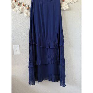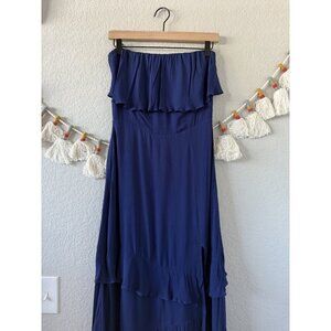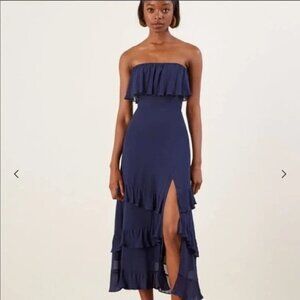 Reformation Indy Navy Strapless Tiered Ruffle Midi Dress Party Dainty Whimsical