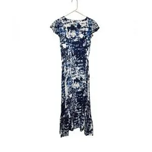 VICI Blue & White Asymmetrical Ruffle Front Tie Maxi Dress | Size Large