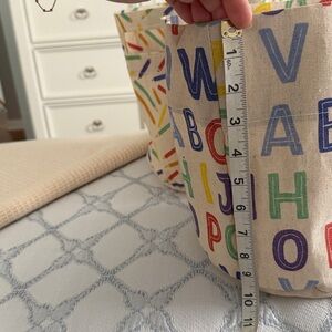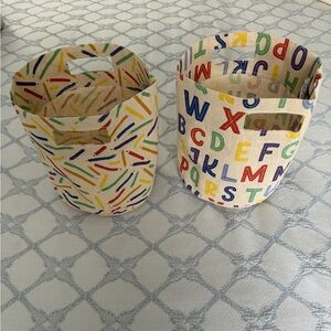 2 storage buckets great for a nursery, kids bedroom or classroom! Holds a good amount of craft supplies, large puzzle pieces or small card games etc.
