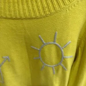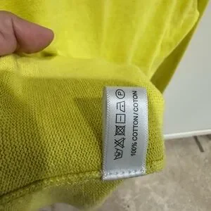 100% cotton. Vibrant yellow with valentine love embroidered logos on front. Excellent condition