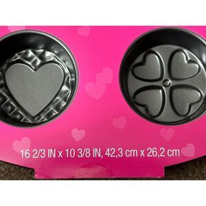 Brand new Wilton 6-cavity heart mini cakes pan. This delightful pan is perfect for baking adorable heart-shaped treats. It features a non-stick surface that ensures easy release and effortless cleanup. The pan is also dishwasher safe, adding to its convenience. Its design allows for creating both solid heart and four-heart clover designs. This pan is perfect for Valentine's Day baking, birthday parties, or any special occasion where you want to add a touch of love to your desserts.
