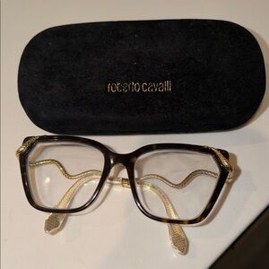 Roberto Cavalli Black and Gold Geometric Eyeglasses