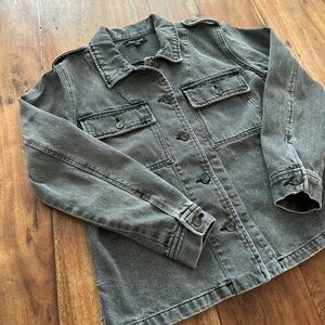 ANTHROPOLOGY x Dear John Tyler Denim Jacket in Black/Grey, Women’s size Small. This denim button down jacket from Anthropologie is 100% cotton with front button flap pockets, a split hem and in a “shacket” style, super cute! It’s in excellent preloved condition, see photos for additional details.