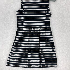 Madewell Black Tan Striped Skater Dress Womens Sleeveless Pockets Size Small