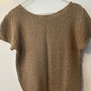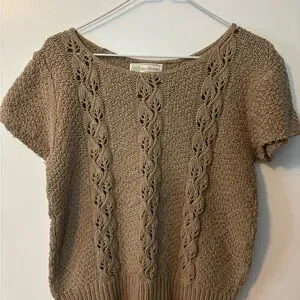 Cross Country Knits Elegant Brown Knit Short Sleeved Sweater Women’s Large