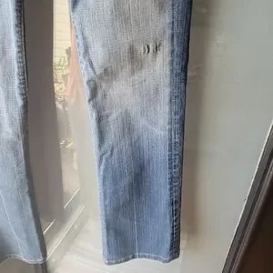● These jeans feature a solid pattern with a medium fabric wash and are made from 98% cotton and 2% Lycra denim. They have a zip and button closure, a low rise fit, and a bootcut style. The jeans also have a 5-pocket design, are machine washable, and come in a classic blue color