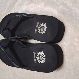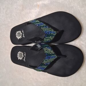 Yellow Box Black and Blue Sandals with Beaded Straps