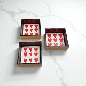 3 Handmade Red Heart Dishes For Small Storage