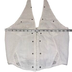 EUC Free People Sunsetter Corset Halter Tank White Eyelet Lace Boned Smocked