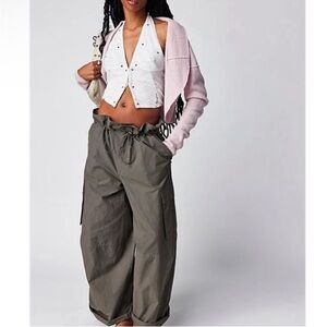 NWOT Free People Sunsetter Corset Halter Tank White Eyelet Lace Boned Smocked XL