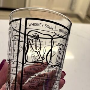 Clear glass with black cocktail recipes printed. Perfect for mixing drinks.