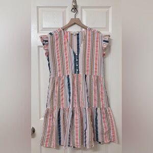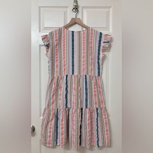 LOFT Women’s Oversized Striped Cotton Flutter Sleeve A-line Dress Size Small